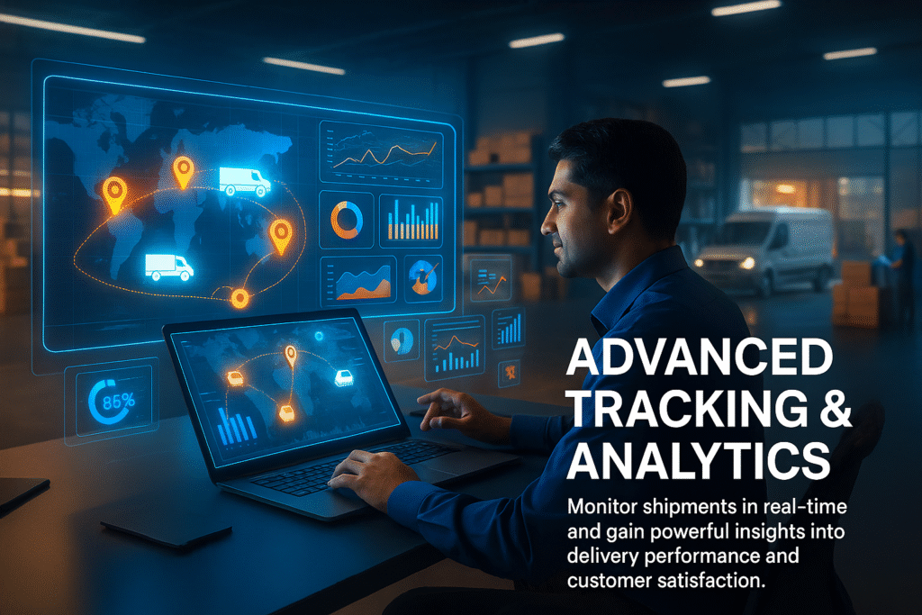 - Analytics Dashboard: Insights on delivery performance, customer satisfaction, and more.